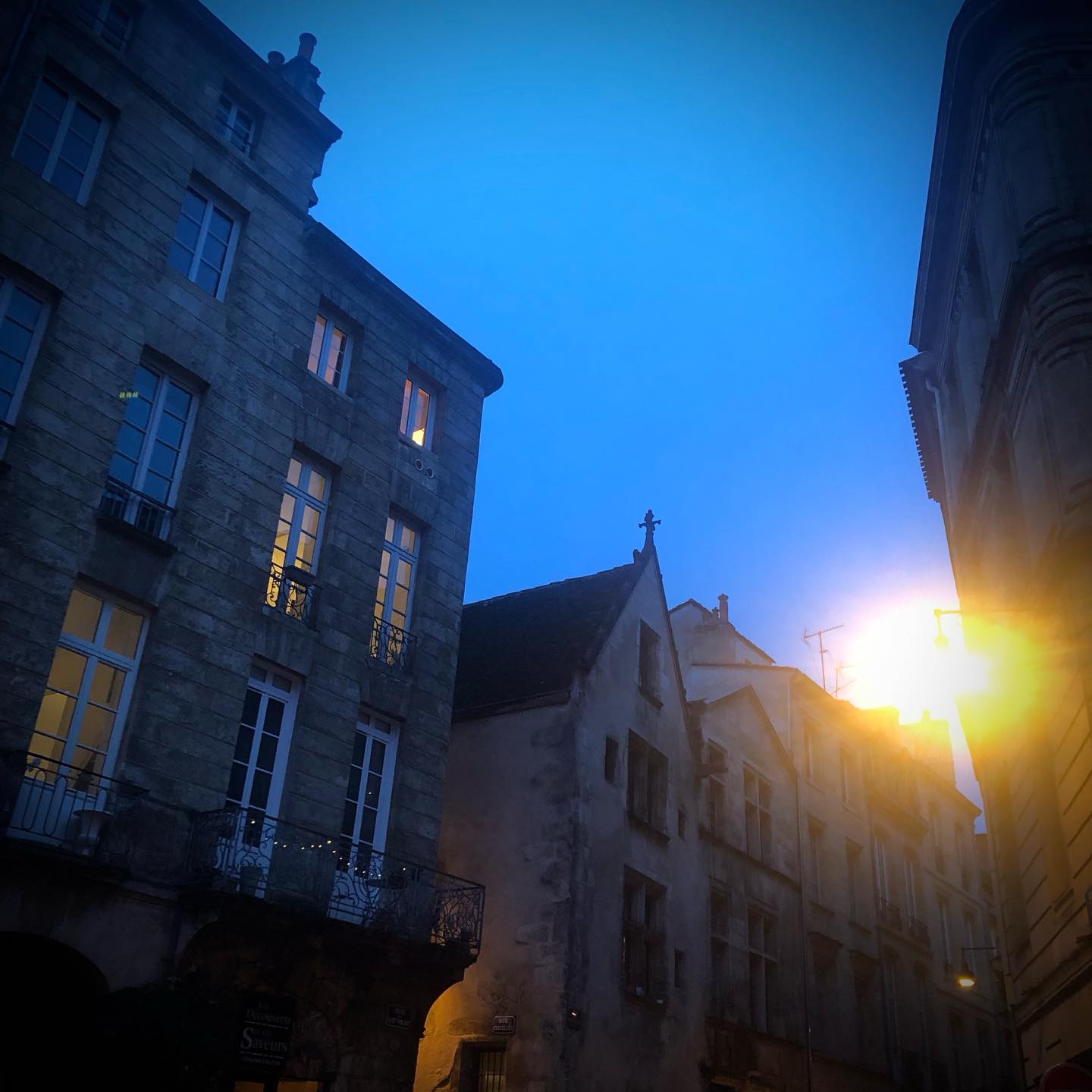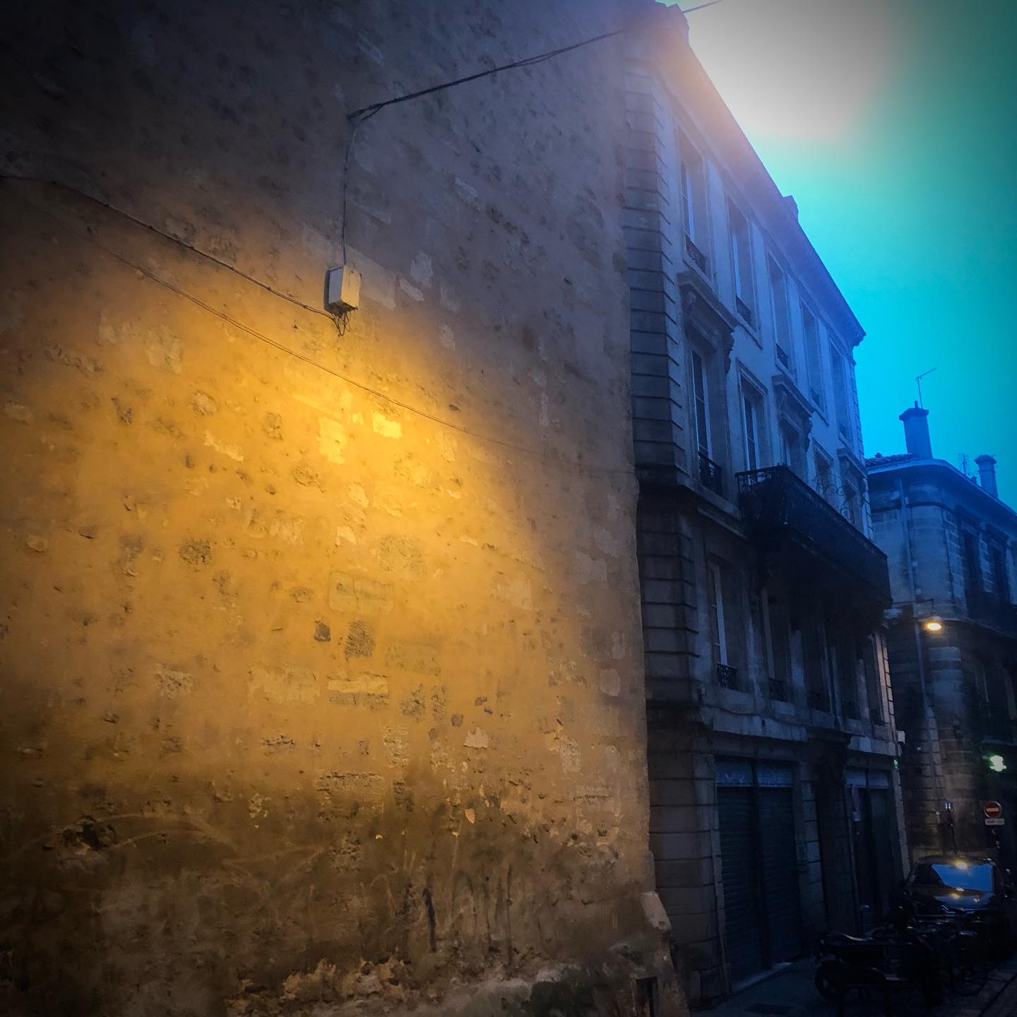 #6278 Publié le 26 janvier 2026 par A.-F. Ruaud Promenade vespérale dans le Bordeaux poudreux d’une fin de jour humide, la vieille ville transformée en décor par la lumière du sodium.