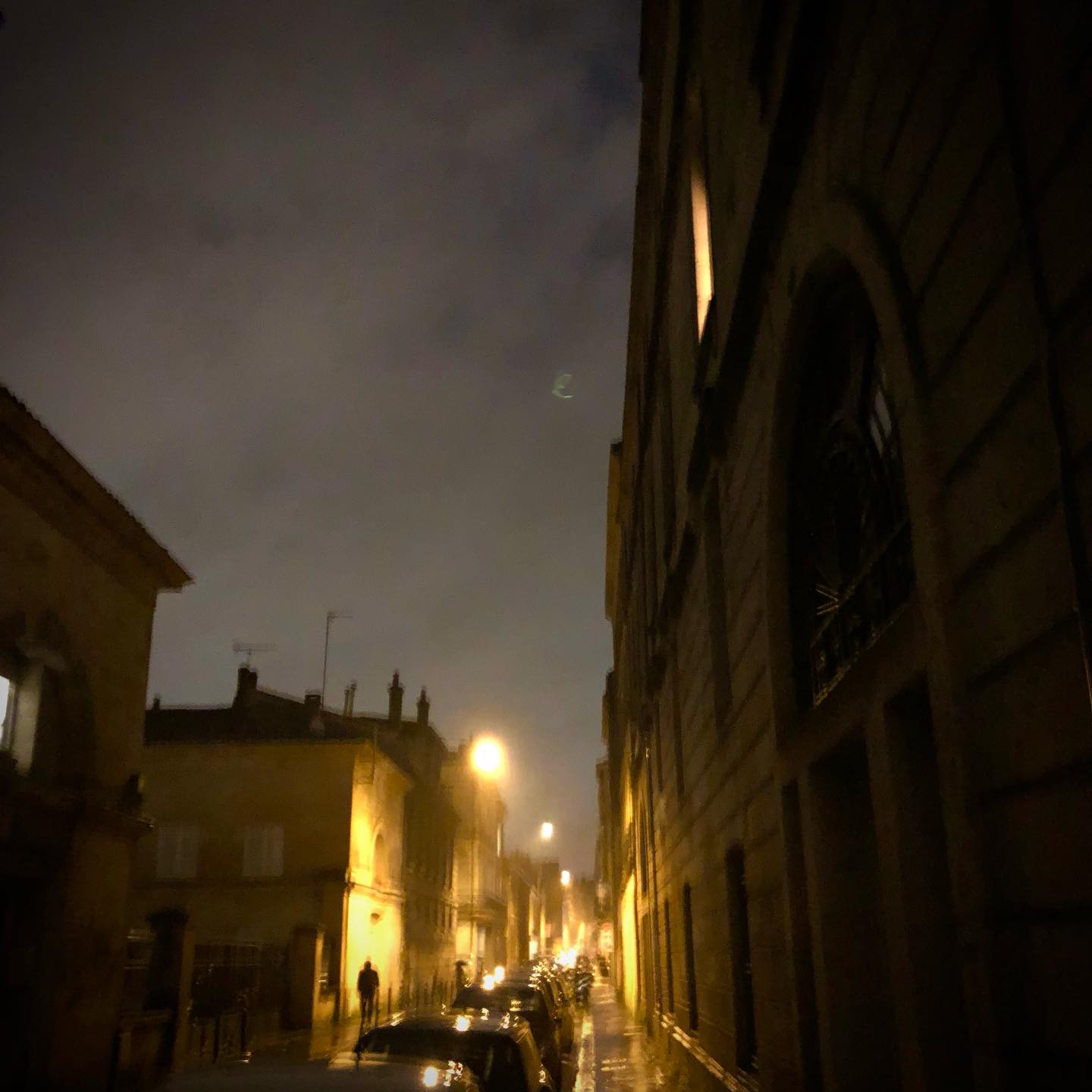 Bordeaux polar, brûlant électrique dans la nuit brouillée de bruine. Bordeaux tempête, emplie des sifflements, ronflements et chocs du vent. Cadavres de poubelles dans les rues, étalées au sol ou encore titubantes. L’ample oscillation des lampes urbaines qui brasse les ombres. Froissements de taule, heurts de barrières, claquements de portes, tintements de verre, bris de branches, houles de bâches et scooters renversés. Le galop des arbres de la caserne. Un flot d’air qui bouscule et qui arrache.