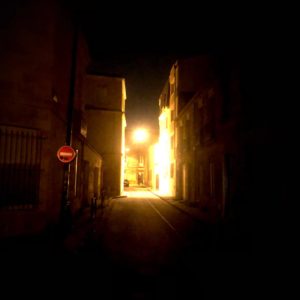 Bordeaux brouillard en grandes bottes grises, les « puces » dans la froide brume piquant les doigts, avec les églises en fantômes gothiques.