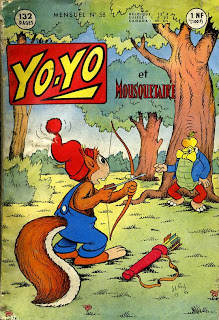 OK, donc quelques scans de vieilleries bédés oubliées… À commencer par Yo-Yo, petit magazine qui décida chez moi de ma vocation: j’allais devenir auteur de bédé! Bon d’accord, ça ne s’est pas réalisé, mais enfant je dessinais sans arrêt, et j’alignais bédé après bédé… Yo-Yo possède donc pour moi un fort attrait nostalgique, et ce pas tant pour la bédé-titre (par Jean-Louis Pesch) que pour une autre, néerlandaise: Dicko Dak. Il y a quelques années j’en avais trouvé une très jolie reliure sur un marché de La Haye, mais le prix était hélas trop élevé.