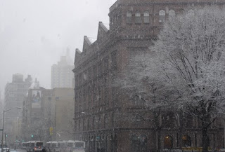 Allez, fin de cette séance de diapos new-yorkaises… sans la moindre photo de gratte-ciel! Vers la fin de mon séjour, il s’est remis à neiger, et je me promenai toute une journée sous les flocons, heureux. Manhattan en était transformé, un ravissement. Même les sempiternels sacs poubelle sur les trottoirs s’en trouvaient (un peu) embellis!
