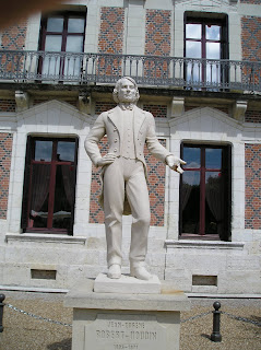 Durant ces trois semaines, j’aurai fort peu mis le nez en dehors du jardin de mes parents. Aujourd’hui, tout de même, nous sommes allé à Blois, pour visiter la Maison de la Magie: cela m’intéressait en particulier pour le prestidigitateur Dickson, dont Arsène Lupin est censé avoir été un élève. Bibliothèque rouge, toujours. Eh bien! Déception de taille: médiocrité absolue. En fait de musée, ce sont juste une poignée de vitrines où les objets sont entassés sans aucun commentaire, aucune explication ; quelques (très belles) affiches idem ; quelques salles sur Robert-Houdin, et c’est fini. Muséographie minimale et pédagogie zéro. Le peu d’explications que l’on peut trouver est rédigé dans un mauvais français, plein de fautes d’orthographe et de mots utilisés à tort. Lamentable. Et rien sur Dickson. Le principal intérêt du lieu, ce sont les cinq dragons mécaniques qui, une fois par heure, sortent roter sur la façade.