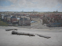 Je fis tout de même trois musées: le municipal, décevant puisque les Mondrian de la collection permanente ne sont pas exposés actuellement (étrange). Le Museum Meermanno, musée du livre où j’eus la joie de voir l’expo Penguin que j’avais manqué à Londres. Et last but not least, le Panorama Mesdag. Très en vogue juste avant l’avènement du cinéma, les panoramas ont disparus partout — sauf ici, à La Haye, où a survécue cette vision de Schreveningen vers 1850. Un véritable voyage temporel! L’illusion est complète: on émerge en haut de la plus haute dune, sous une pagode. Autour, tout autour, Schreveningen dans le passé, si parfait que l’on hésite à distinguer la limite entre le véritable sable et le mur peint. Et l’éclairage zénital en lumière naturelle ajoute encore à ce choc visuel, cette vision d’un temps enfouis ici presque palpable.